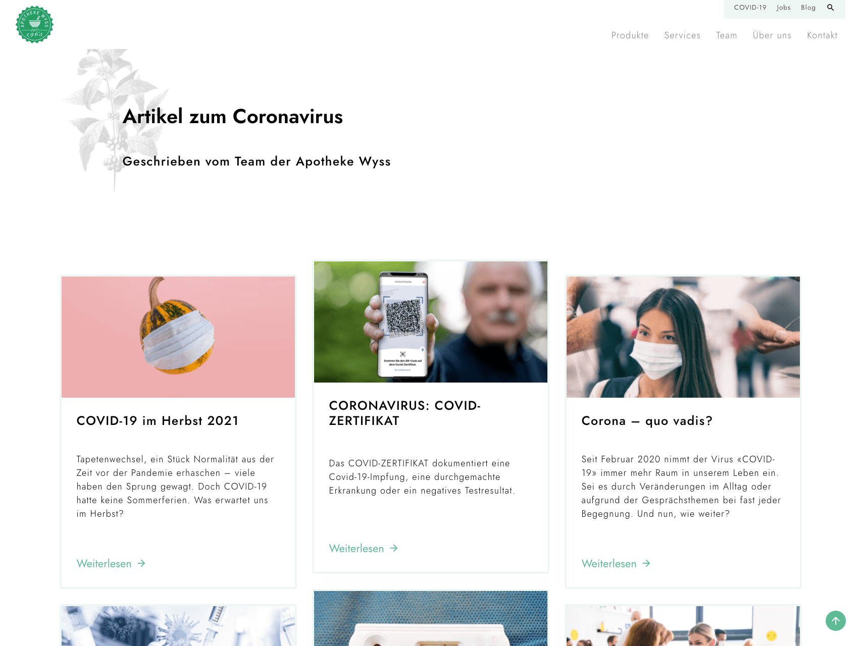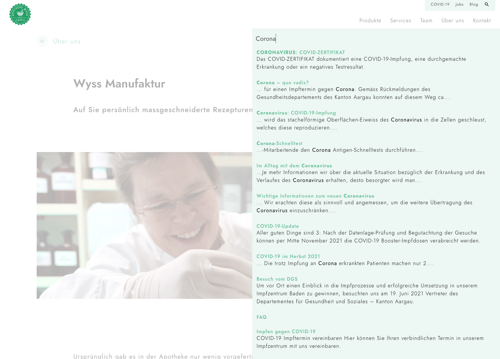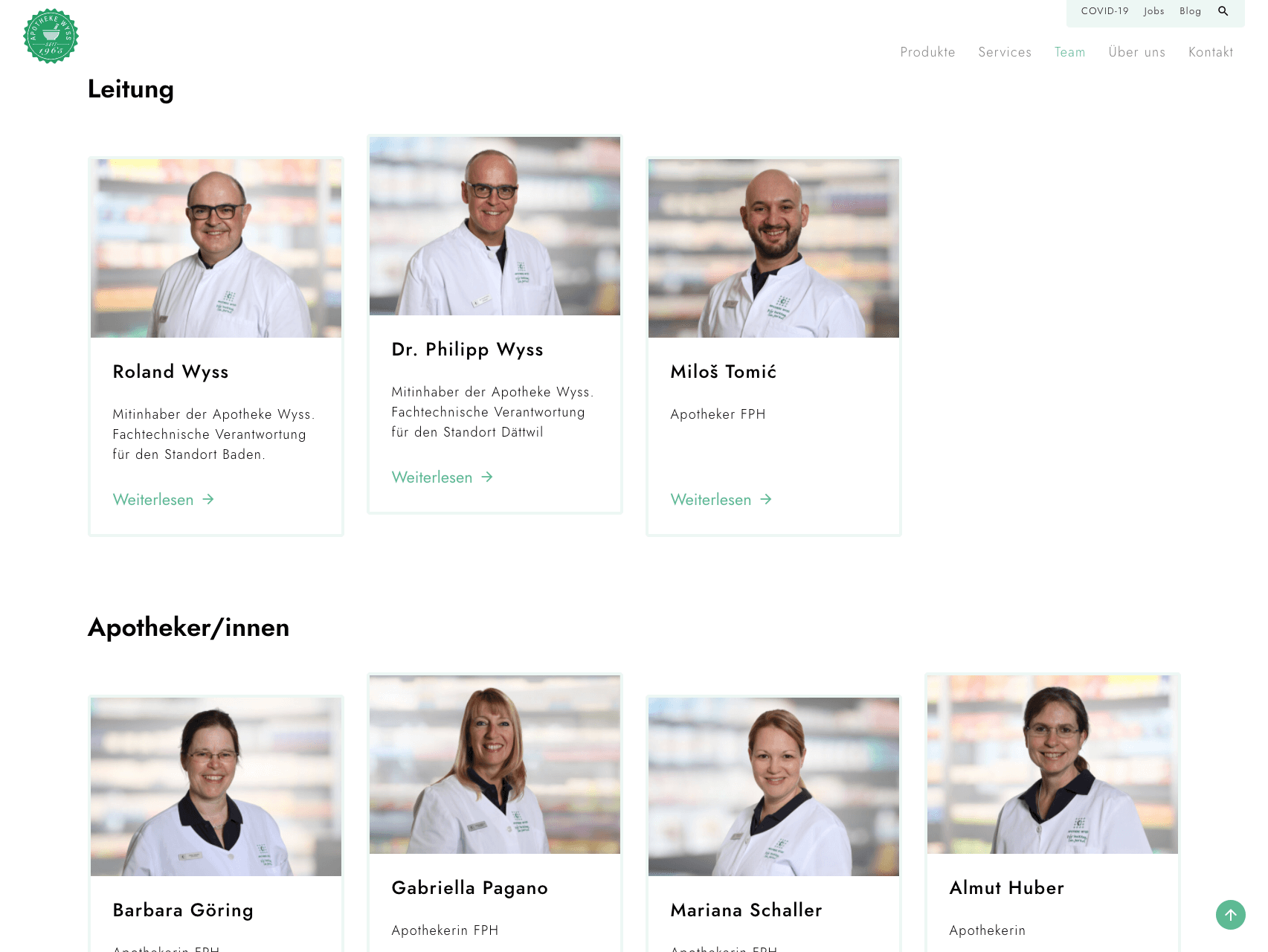Die beiden Brüder Wyss übernahmen 1998 das Unternehmen von Ihrem Vater. Der beliebte Standort in Baden wurde 2006 um einen zweiten im Täfernhof in Dättwil erweitert. Beide Apotheken verfügen über moderne Infrastruktur und hochmotivierte Mitarbeiter*innen. Gleichzeitig werden noch traditionell Rezepturen selber massgeschneidert hergestellt. Dass hinter einer Apotheke viel mehr als die blosse Abgabe von Medikamenten steckt, wurde der Öffentlichkeit mit dem neuen Internetauftritt klar. Dieser wurde mit vielen sorgfältig geschriebenen Texten und Bildern ausgestattet. Jede zweite Woche geht seit dem Relaunch ein ausführlicher Blogartikel online. Darin wird die Kundschaft über gesundheitsrelevante Themen aufgeklärt. Ein Newsletter und regelmässige Posts machen auf die kommunikativen Efforts aufmerksam – und erfreuten sich seit Beginn einer immer wachsenden Followerzahl.